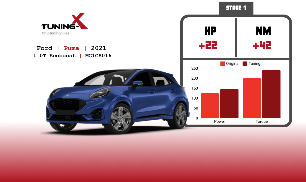 Chiptuning of Ford Puma 1.0T Ecoboost 2021 with MG1CS016